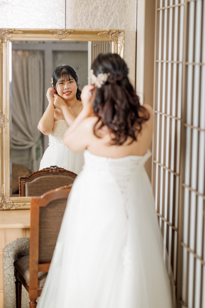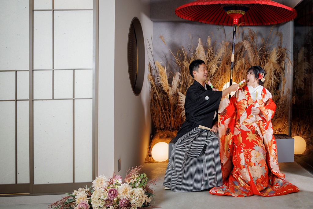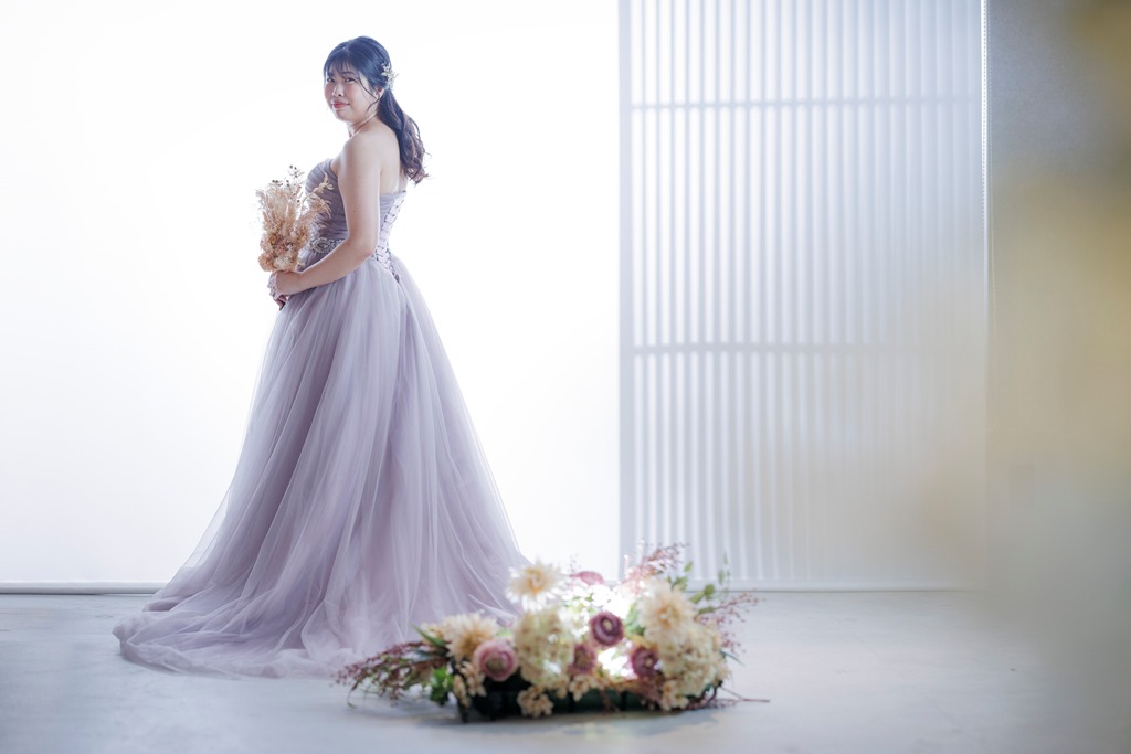 In the vibrant and historic city of Osaka, you entrusted us with capturing your special day within the timeless setting of our studio. In Western attire, you radiated sophistication and charm, as if gracing the pages of a high-end magazine, full of elegance and brilliance. In kimono, the profound beauty of Japanese tradition came alive within the studio space, creating a serene atmosphere of grace and dignity — each photograph becoming a timeless treasure.