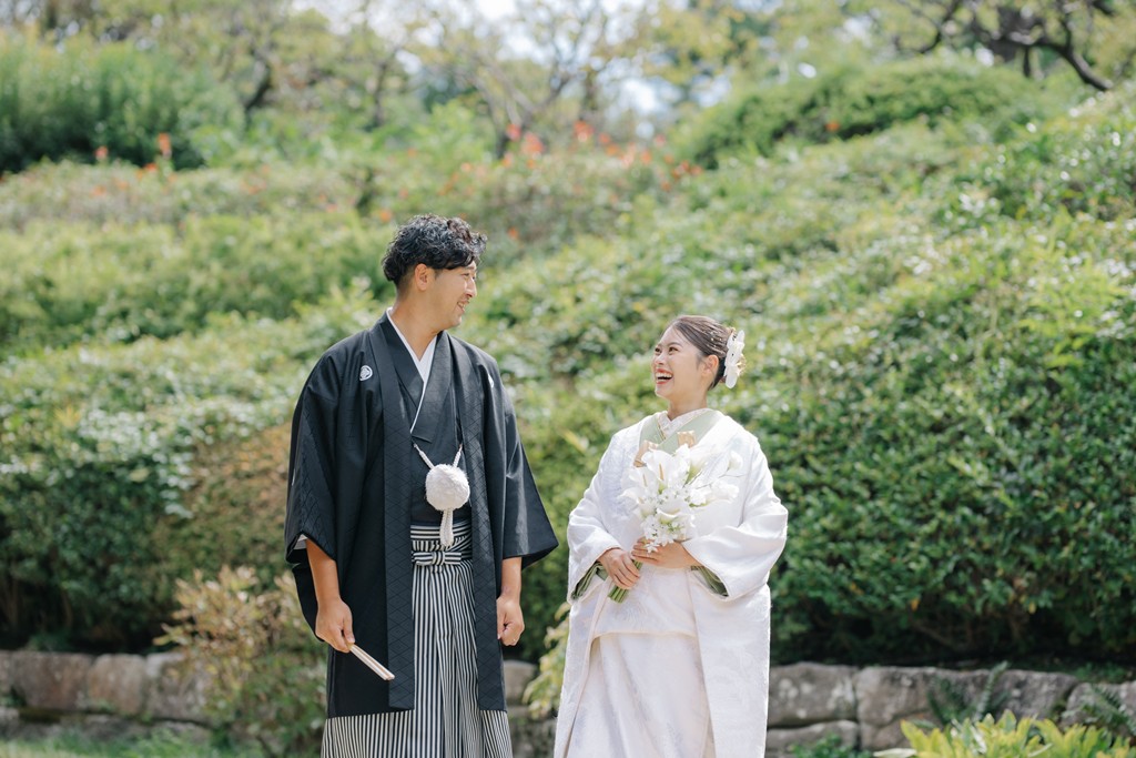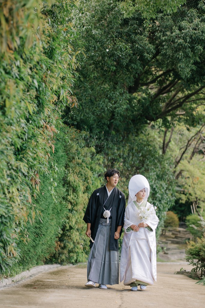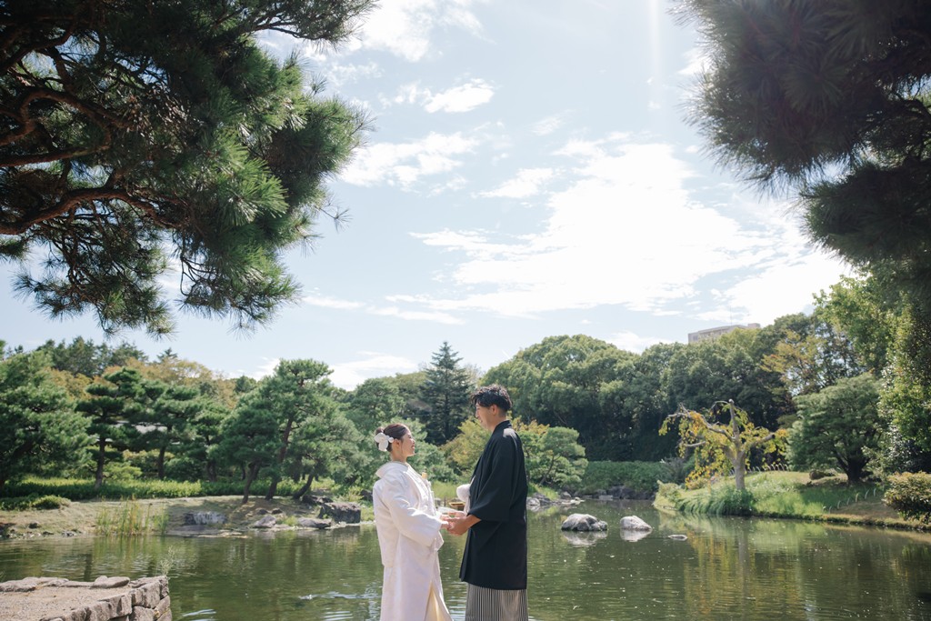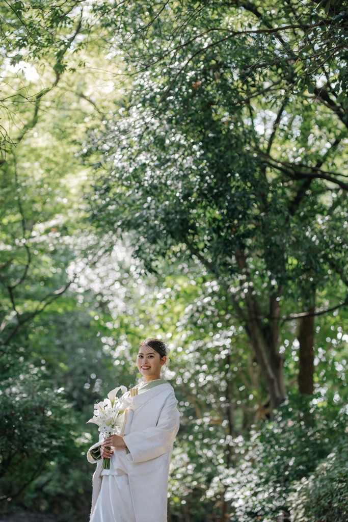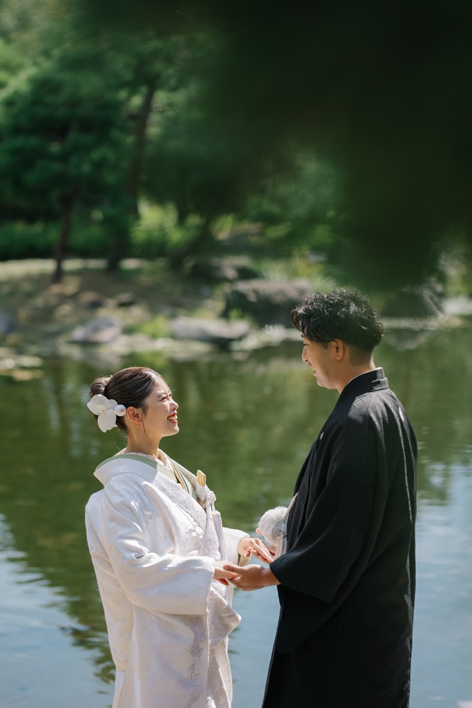 The shimmering reflections on the water, seasonal flowers, and the presence of the garden stones—all of these elements came together to beautifully enhance your special day.As you walked gracefully through the garden in your elegant kimono attire, each step transformed the scenery into something cinematic.