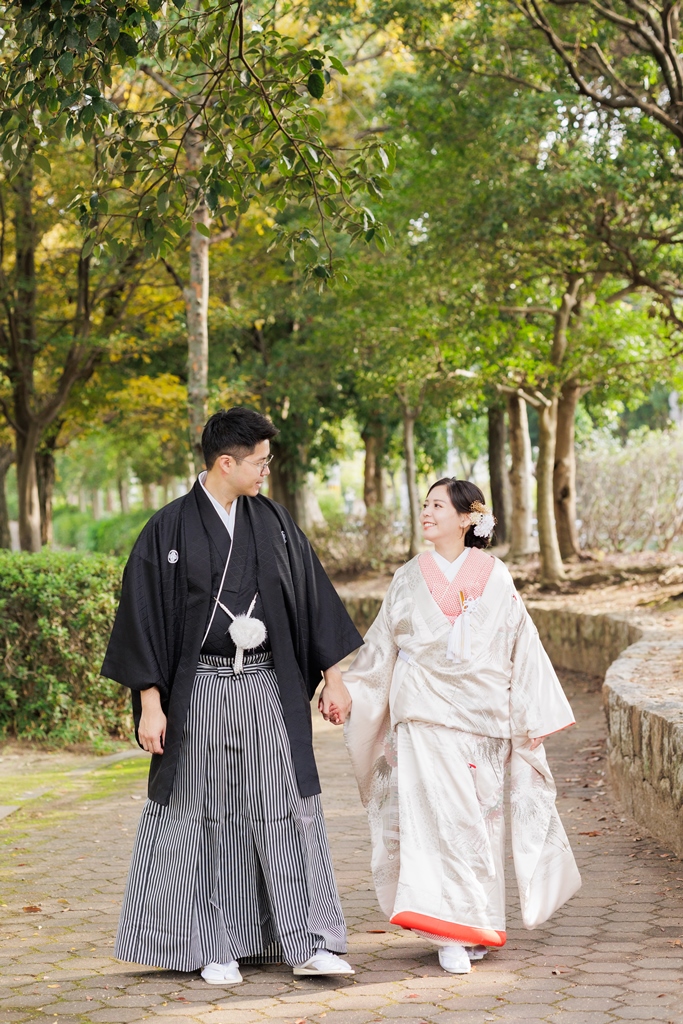 Pre-wedding photoshoot at Daishin Park, now ablaze with autumn colors♡