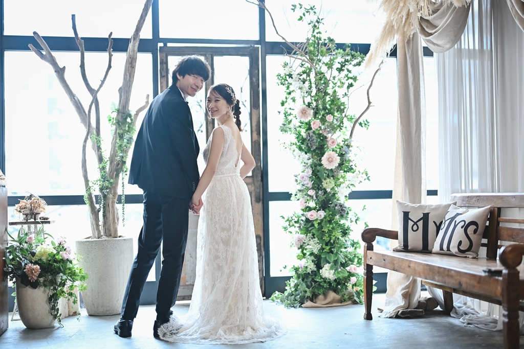 Tokugawa Garden was already on my list as a potential wedding venue. Since we've now decided on a local venue in Gifu for the ceremony, I wanted to have our pre-wedding photos taken at the scenic Tokugawa Garden. Additionally, the calm and lovely atmosphere inside the shop made me want to have studio photos taken as well. - FROM