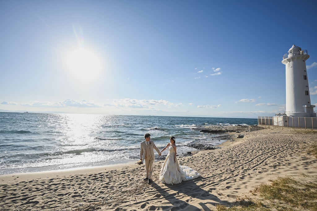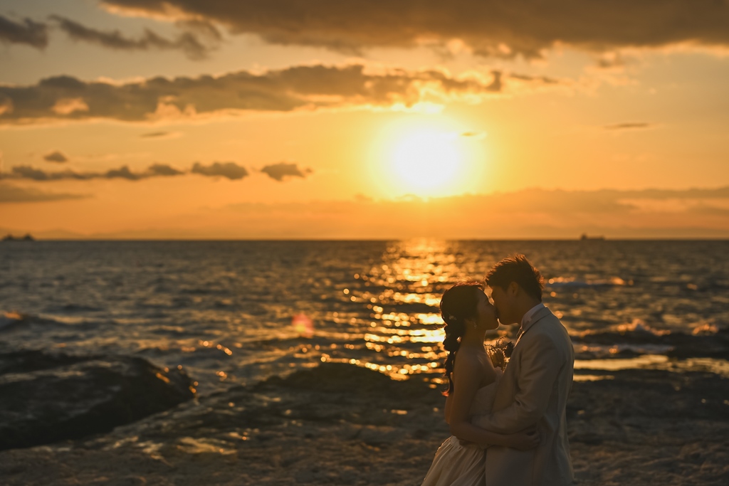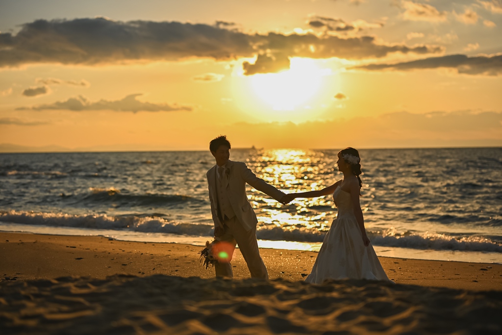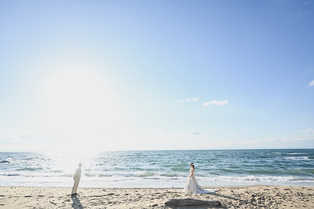 Wedding photography in the inland sea that looks great at noon or at sunset.