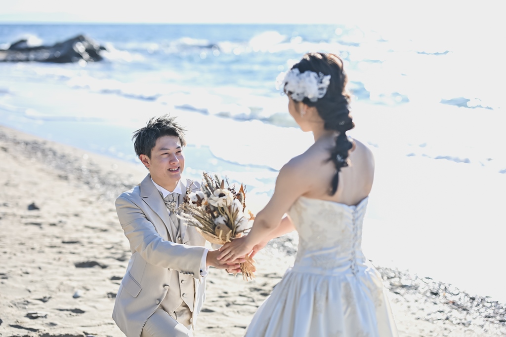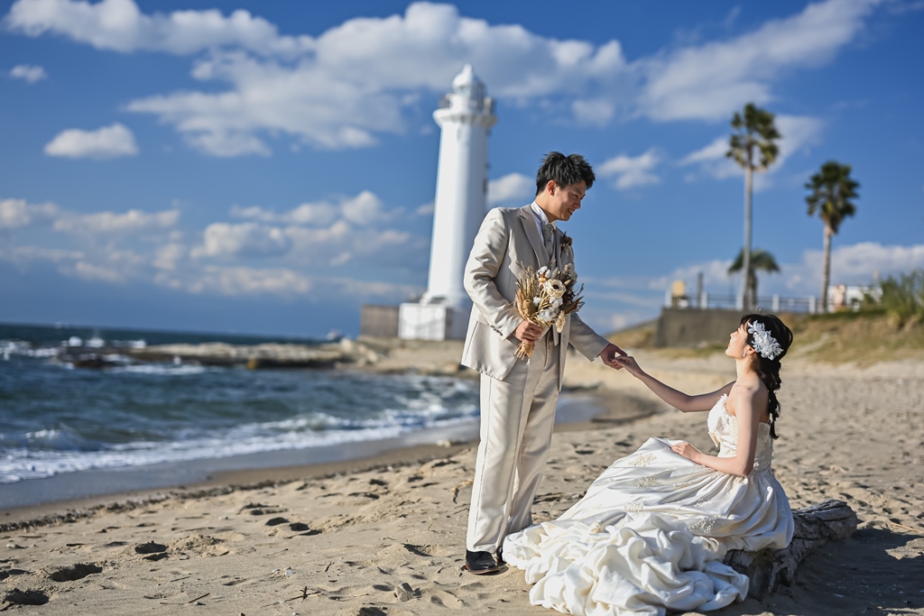 - At first I looked around on the Internet and liked the atmosphere, etc., so I came here for a consultation. I wanted to shoot on location at the beach, so I was happy that we could do that and that there were various plans available.